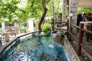 In the end we shall dine at Argyroupolis, where we’ll enjoy waterfalls, and have the best local “anticrysto” lamb or grilled salmon under the shade of old planes.